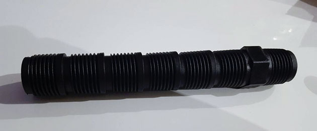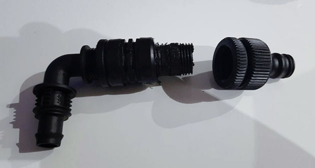 In questo raccordo qui femmina e femmina andrà avvitato come già detto il passaparete e la curva: dovrebbe uscire una cosa del genere; scusate il lavoro sporco ma ero in sperimentazione.