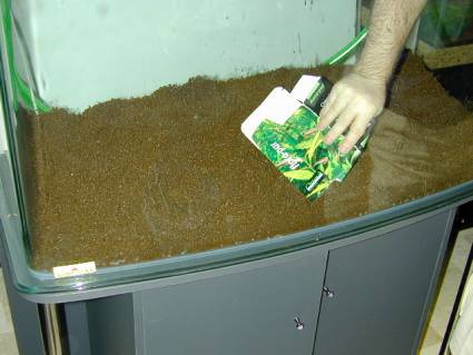 ![]() …una mezza dose di laterite. In questo caso si è usata una confezione per 100 litri essendo l’acquario un 200 litri.