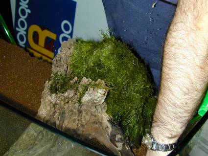 Costantino ha portato dal suo acquario da salotto un legno di torbiera già piantumato con del muschio di java. |