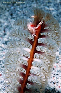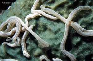 Nei primi distinguiamo le pulci, i pidocchi e molti Ditteri. Questi animali sono però, nello stadio larvale, endoparassiti poiché crescono nella pelle dell’ospite oppure al suo interno. Vi sono alcuni parassiti che compiono il loro ciclo vitale in più ospiti intermedi; si pensi ad esempio ai Protozoi, in particolar modo agli Sporozoi e ai vermi della specie Cestodi, Nematodi e Platelminti. Alcuni Cestodi nel loro ciclo vitale hanno bisogno di più ospiti intermedi e in alcuni casi questi sono crostacei e pesci. Per ogni essere vivente esistono parassiti specifici, in acquariologia il caso più noto è quello del Cryttocarion, un protozoo che colpisce i pesci marini, quello della “malattia dei puntini bianchi”. Gli esempi di simbiosi, nel termine più ampio, potrebbero essere milioni perchè le specie hanno cercato di espandersi sempre di più, occupando molte zone che una volta non erano di loro competenza: è la regola della natura. Ringraziamo Roberto Sozzani per le foto fornite. Se volete vedere altre incredibili foto di organismi commensali visitate il sito: