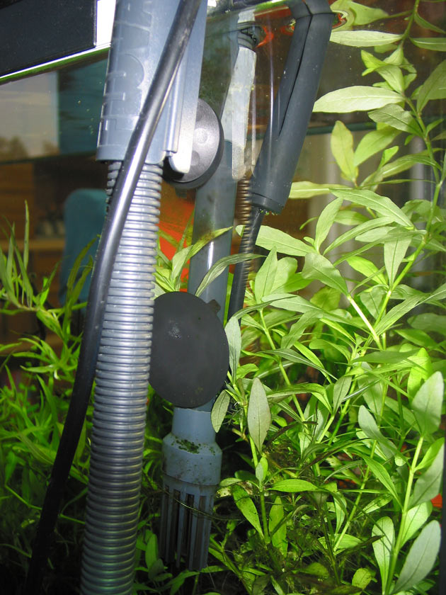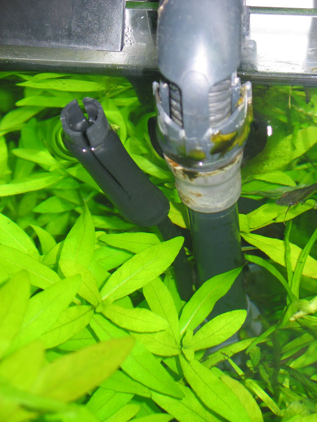 4) Rimuovere dalla vasca il tubo di ripresa del nostro filtro esterno (io ho un Pratiko della Askoll, ma il componente è simile in quasi tutti i filtri..) e praticare un foro vicino al cestello di aspirazione. Il foro dovrà avere il diametro dell’innesto che abbiamo tagliato a “fetta di salame”.