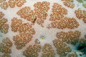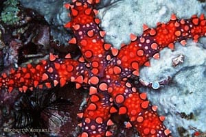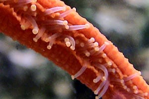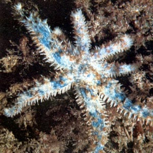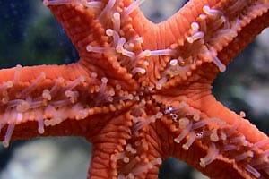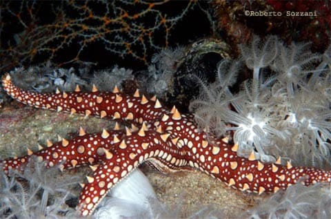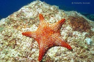 Tuttavia, alcune specie si riproducono mediante incubazione (mentre le specie ermafrodite sono dedite all’autofecondazione), come nel caso del genere Astherias: in A. groenlandica, gli avannotti risiedono nello stomaco, mentre in A. spiralis usano un apposito peduncolo per attaccarsi alla superficie orale della riproduttrice. Al primo stadio evolutivo, la larva ? denominata bipinnaria, ed è caratterizzata da una forma triangolare, una spiccata rientranza, in corrispondenza del ventre, e 2 bande ciliate, una compresa nell’altra. Dopo un certo periodo, la bipinnaria evolve alla forma branchiolaria, corroborata dalla comparsa di 3 piccole braccia che consentono al piccolo organismo di ancorarsi al fondo, in attesa, di evolvere allo stadio definitivo; tuttavia negli Astropectinidi, la larva completa tale processo nell’habitat pelagico. Moltiplicazione e Rigenerazione Non bisogna mai allarmarsi se si vedono esemplari che hanno perso parte de loro corpo, poichè hanno una capacità di ripresa notevole, testimoniata dalle 2 tipologie di rigenerazione adottate. Tramite la schizogonia discale tipica, ad esempio, in Coscinasterias tenuispina, l’animale dà luogo ad una divisione trasversale del disco, e ogni parte divisa è preposta alla rigenerazione delle braccia mancanti; con l’ausilio della schizogonia brachiale (peculiare del genere Linckia) gli Asteroidi sono in grado di riprodursi agamicamente, cioè staccando dal corpo centrale un pezzo il quale si rigenera e la parte staccata è in grado di dare origine ad un individuo completo; tale fase è corroborata dalla presenza della classica “forma a cometa”, in cui sono evidenti 4 giovani arti in procinto di svilupparsi, posizionati alla base di un braccio grande.  |