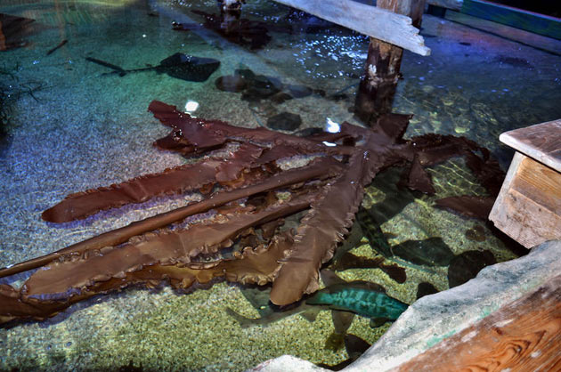 In un’altra vasca abbastanza grande c’è il polpo gigante, ma purtroppo in questa vasca è vietato usare il flash ed essendo quasi al buio è impossibile fare foto. La vasca principale riproduce un vecchio porticciolo abbandonato nel mare del nord davvero ben fatto, dove c’è anche il granchio “crabzilla”, quello che c’è adesso è relativamente piccolo, prima ne avevano uno enorme che però hanno dovuto trasferire all’ acquario di Parigi proprio perché era diventato troppo grande.