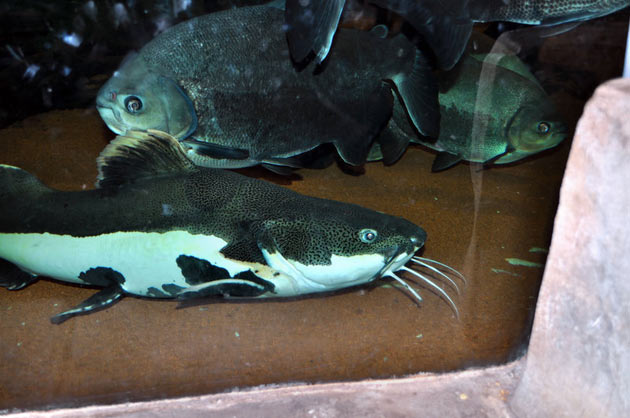 nella vasca più grande c’ era una cascata ed era popolata con degli enormi pesci gatto e dei “pacu” tutti di almeno un metro di lunghezza!